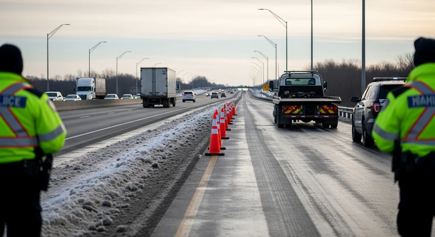 A collision involving two transport trucks shut down the eastbound lanes of Highway 401 at an on-ramp in Cambridge, Ontario, early on March 17, 2026. The crash occurred amid icy road conditions, causing significant travel disruptions for local commuters and long-haul drivers.