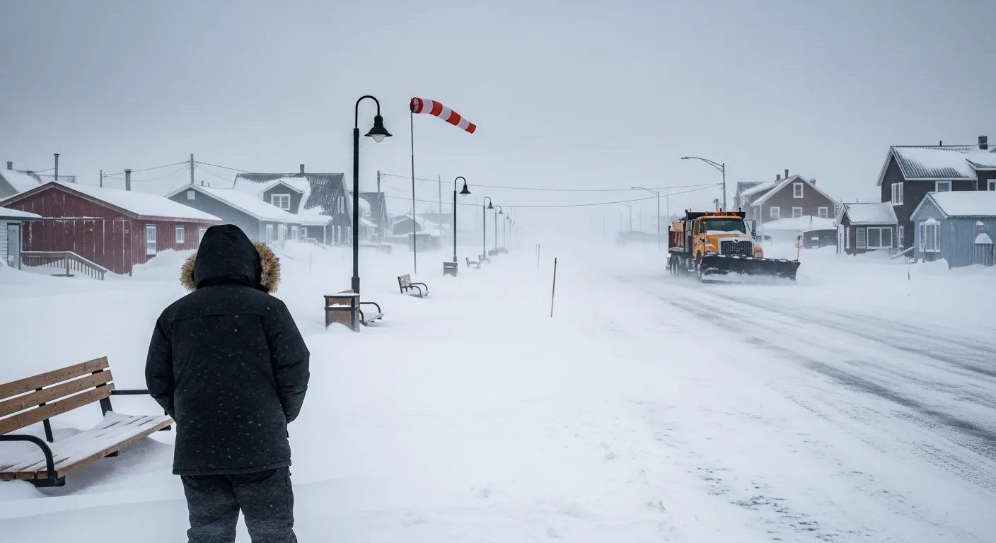 Forecasters warn of northwest winds sustained near 60 km/h with gusts up to 80 km/h and temperatures falling to about −35°C. Those conditions are producing whiteout and near‑zero visibility, making travel hazardous and increasing the risk of frostbite within minutes on exposed skin.